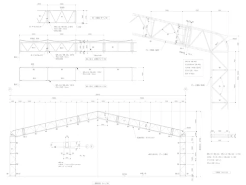 ①地域の積雪量や風速に配慮し、過剰ではないが十分な強度を持つ軽量鉄骨のサイズと配置を決定します。これにより、従来の倉庫よりも資材コストと工期を大幅に削減しながら、建築基準法を満たす